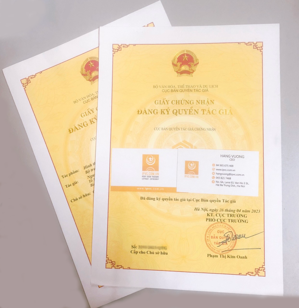 Sau đây là một số hình ảnh của (i). Giấy chứng nhận đăng ký nhãn hiệu & (ii). Giấy chứng nhận đăng ký quyền tác giả mà IPVC đã hỗ trợ khách hàng xác lập quyền thành công: