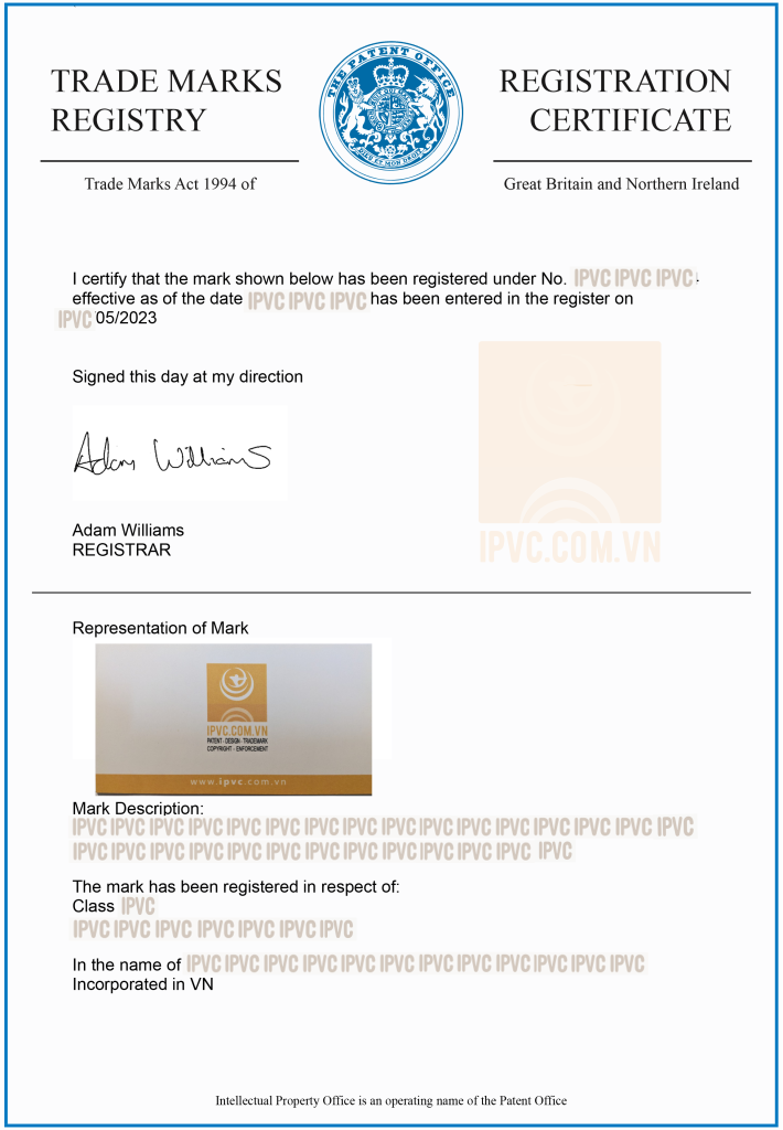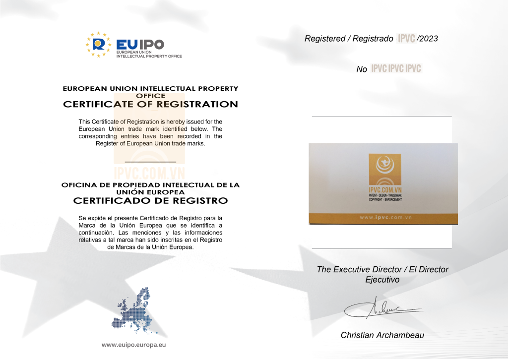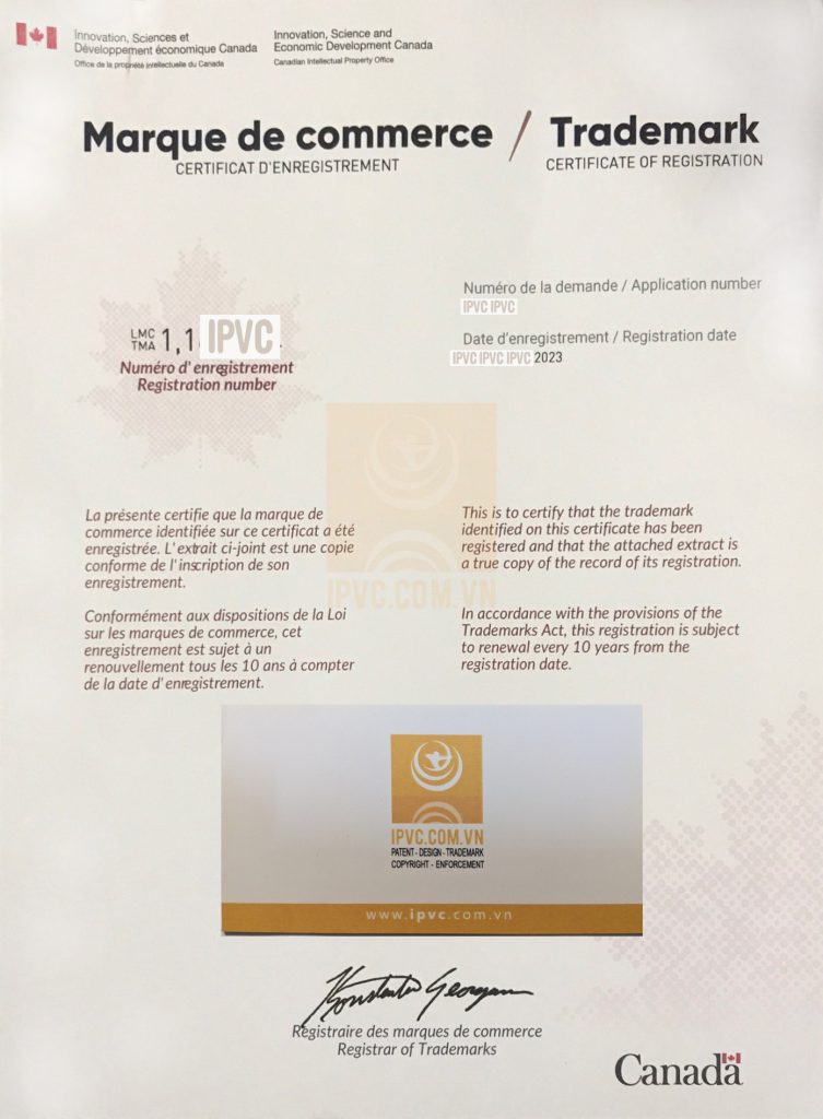 Dưới đây là một số hình ảnh văn bằng bảo hộ nhãn hiệu tại một số quốc gia mà IPVC đã hỗ trợ khách hàng được cấp trong thời gian gần đây: